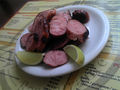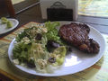 Bife de chouriço com salada.