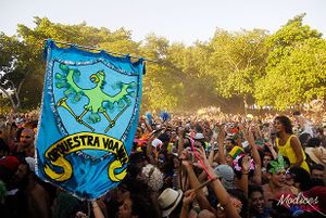 - "A Orquestra Voadora surgiu em 2008 através do encontro de músicos do carnaval de rua do Rio de Janeiro. Desde então, as performances voadoras dessa brass band não param de encantar o público, seja ao ar livre, nas saídas de rua e nos ensaios abertos que acontecem nos jardins do Parque do Flamengo, seja nas apresentações em festivais como Open Air e Viradão Cultural 2010, em grandes casas de show como Circo Voador e os Teatros Rival e Odisséia e nos seu vôos nas comunidades do Rio como o complexo do Alemão, Complexo da Maré, entre outros. Apertem os cintos e se preparem para embarcar nessa viagem alucinante do carnaval!!."