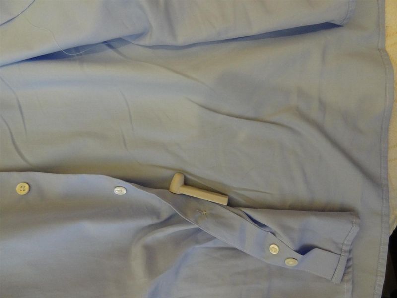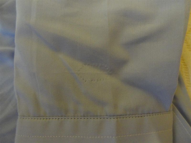 Comprei três camisas no dia 04/outubro/2011. Pedi para arrumarem as mangas, que estavam um pouco longas. Hoje fui utilizar pela primeira vez e fui supreendido com o alarme, que não foi retirado pelo vendedor. O vendedor esqueceu, isso acontece (mas eu acho que deveria tocar o alarme na saída, mas não tocou). Mas aproveitei a espera pelo cliente para analisar a camisa com detalhes. Não havia feito isso na loja.